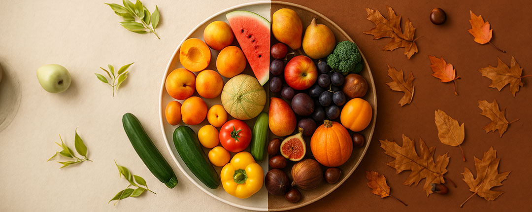 En été, les assiettes se remplissent de tomates, melons, poivrons et courgettes, véritables symboles de soleil et de fraîcheur. Dès septembre, la saison change et de nouvelles saveurs apparaissent. Pommes, poires, raisins et champignons remplacent peu à peu les fruits juteux et légumes d’été.